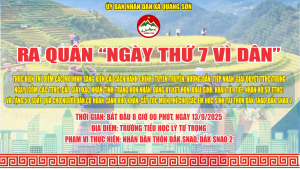 QUẢNG SƠN RA QUÂN “NGÀY THỨ 7 VÌ DÂN” QUYẾT TÂM XÂY DỰNG NỀN HÀNH CHÍNH GẦN DÂN, SÂU SÁT VỚI DÂN, VÌ DÂN MÀ PHỤC VỤ 16/09/2025 Không có bình luận
