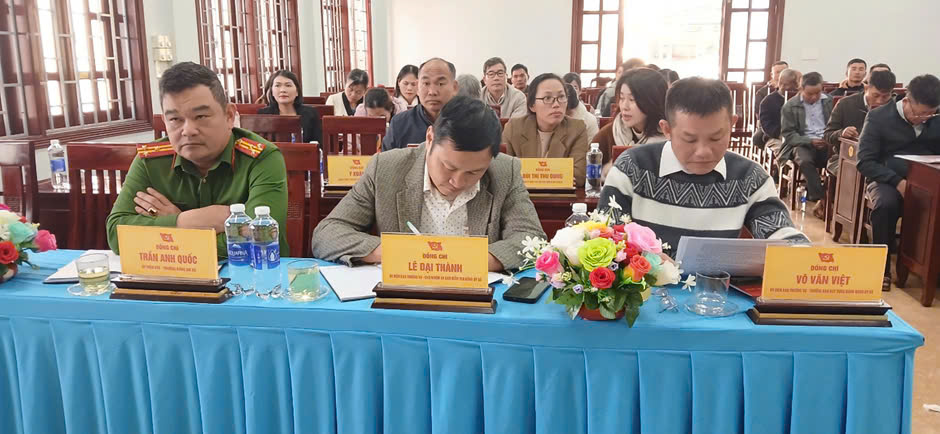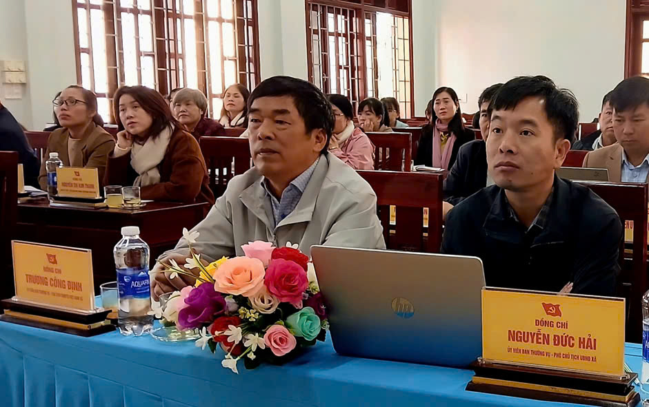 Chủ trì Hội nghị có các đồng chí: Nguyễn Thị Thu Hường – TUV - Bí thư Đảng ủy - Chủ tịch HĐND xã; Đồng chí Đoàn Trung Kiên - Phó Bí thư Thường trực Đảng ủy; Đồng chí Đoàn Văn Phương - Phó Bí thư, Chủ tịch UBND xã.