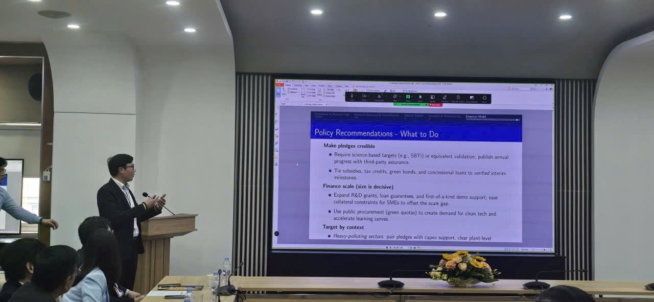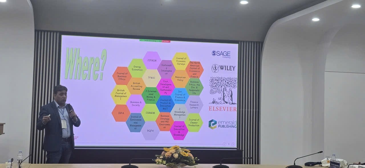 Bên cạnh đó là những chia sẻ của các diễn giả: GS.TS. Nazim Hussain - Đại học Groningen (Hà Lan) về hành vi “tô vẽ xanh” và bằng chứng từ thị trường trái phiếu doanh nghiệp; GS.TS. Kanitsorn Terdpaopong - Đại học Rangsit (Thái Lan) về nghịch lý về phát triển bền vững - góc nhìn hiệu quả về thể chế, môi trường - xã hội - quản trị; GS.TS. Santosh Mehrotra -Đại học Bath (Anh) về tiếp cận công nghệ và đổi mới sáng tạo - chiến lược của các quốc gia Trung Quốc, Ấn Độ và Việt Nam...