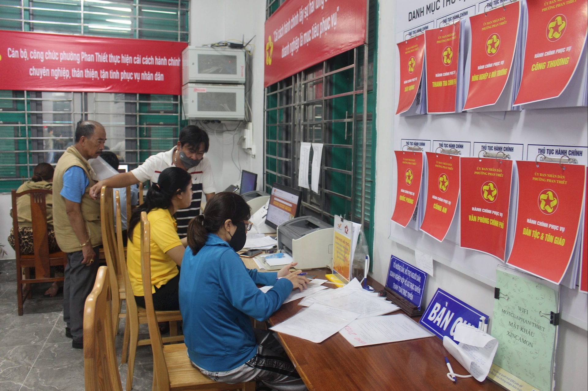 Người dân được hỗ trợ làm thủ tục tại trung tâm hành chính công phường Phan Thiết
