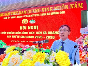 Phát biểu tại Hội nghị, Chủ tịch UBND xã Quảng Sơn Đoàn Văn Phương nhấn mạnh, phong trào thi đua giai đoạn 2025 – 2030 của xã sẽ bám sát nhiệm vụ chính trị, phát huy sức mạnh toàn dân, đổi mới nội dung, hình thức tổ chức để tạo khí thế thi đua sôi nổi từ cơ sở. Qua đó, góp phần xây dựng Quảng Sơn ngày càng phát triển toàn diện, bền vững.