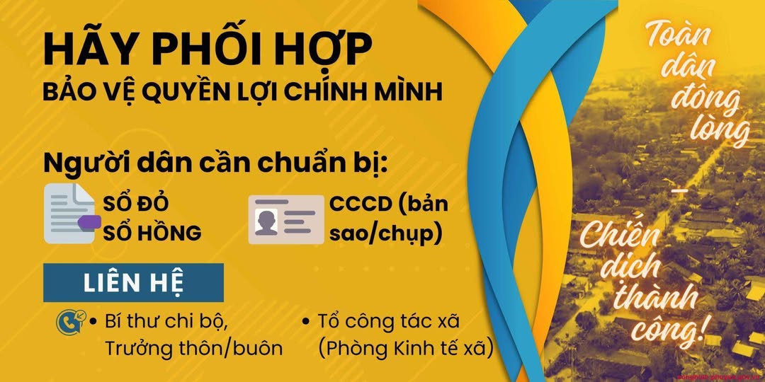 Thực hiện Kế hoạch số 3920/KH-UBND ngày 23/9/2025 của UBND tỉnh Lâm Đồng; Kế hoạch số 61/KH-UBND ngày 25/9/2025 của UBND xã Quảng Sơn triển khai thực hiện chiến dịch làm giàu, làm sạch cơ sở dữ liệu Quốc gia về đất đai, Ủy ban nhân dân xã Quảng Sơn đề nghị toàn thể nhân dân trên địa bàn xã tích cực phối hợp, cung cấp đầy đủ, chính xác thông tin liên quan đến đất đai của hộ gia đình, cá nhân (như giấy chứng nhận quyền sử dụng đất, thông tin chủ sử dụng, biến động đất đai, CCCD, v.v.) khi được thành viên ban chỉ đạo hoặc trưởng các thôn, bon liên hệ thu thập.