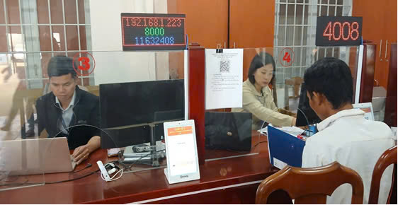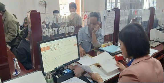 Ảnh: Không khí làm việc tích cực, nghiêm túc, trách nhiệm, vì Nhân dân phục của cán bộ, công chức nhằm phục vụ, giải quyết nhu cầu của người dân tại Trung tâm phục vụ Hành chính công xã